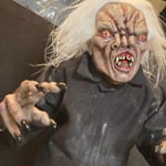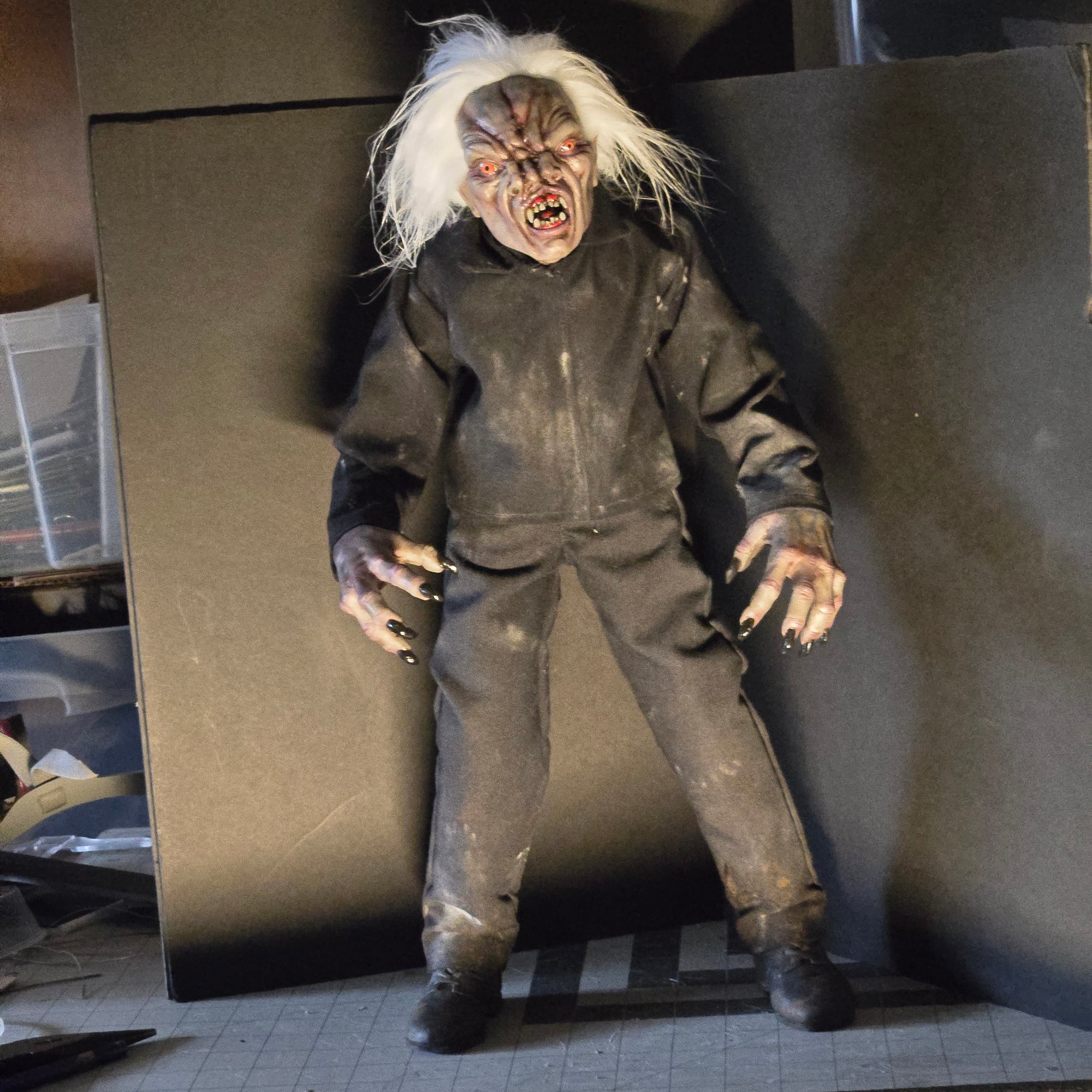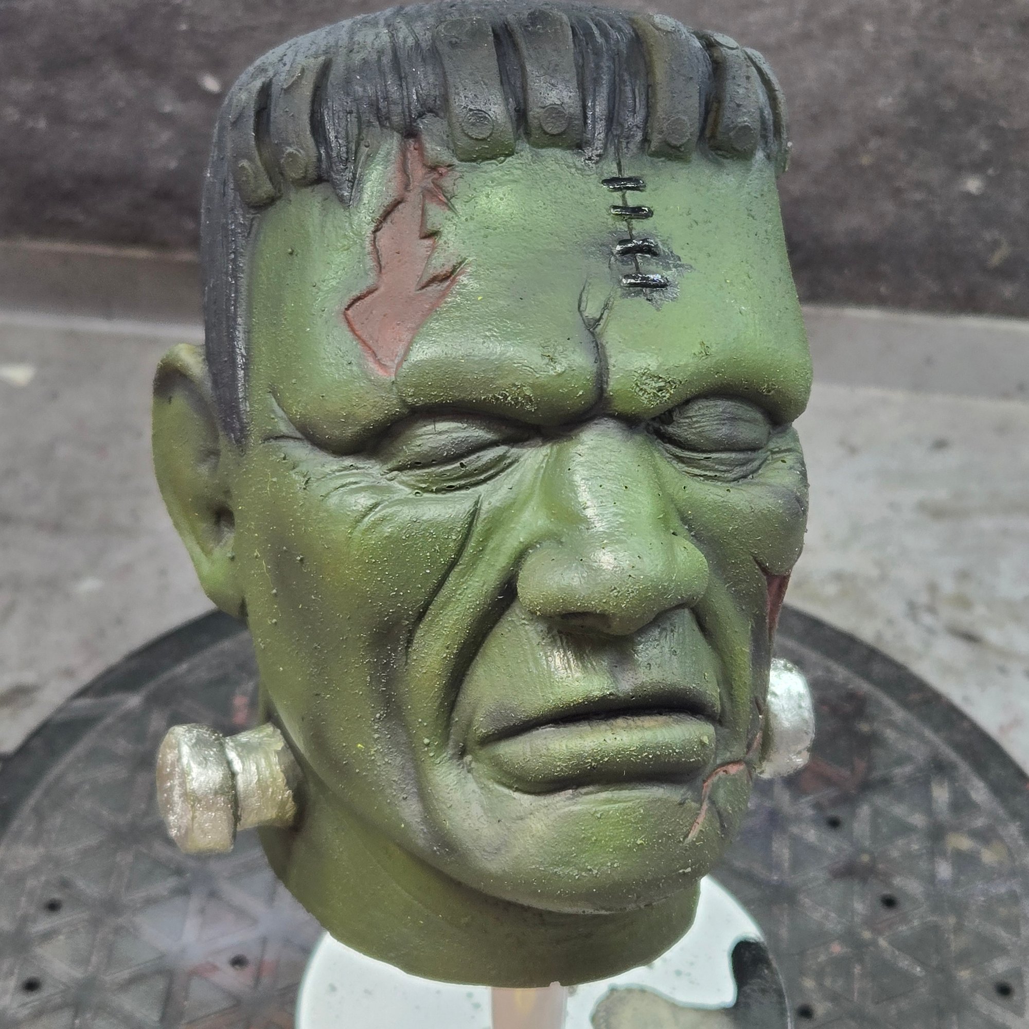 19" tall custom made figure! Head, hands, and feet are resin casting attatched to a plush body. There is a wire armature inside to give some poseability. Also includes a custom made, miniture "Frank" latex mask that fits on the figure